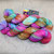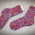 HINWEIS zu dieser Färbung: Auf dem 2. Bild ist ein Beispiel zu sehen, wie der Strang verstrickt aussehen KANN. Die "Chaos- Färbungen" können sehr verschieden ausfallen. Solltest du Socken daraus stricken wollen, kann es dazu kommen, dass die Socken unterschiedlich aussehen!